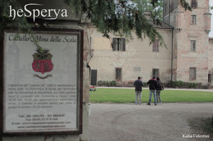 Villa Mina della Scala domina isolata, poderosa ma elegante nella sua vasta struttura quadrilatera con torri, torrette e mura di recinzione. Al di là della strada si trova Casteldidone.